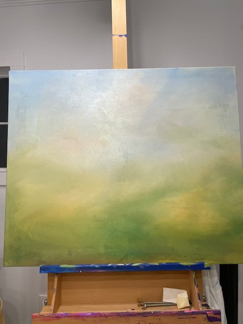I’ve recently started a new landscape, just in its early stages, but already leaning toward a spring palette—lighter, more open, with a different energy than the winter work. I wanted to share a small glimpse as it unfolds.